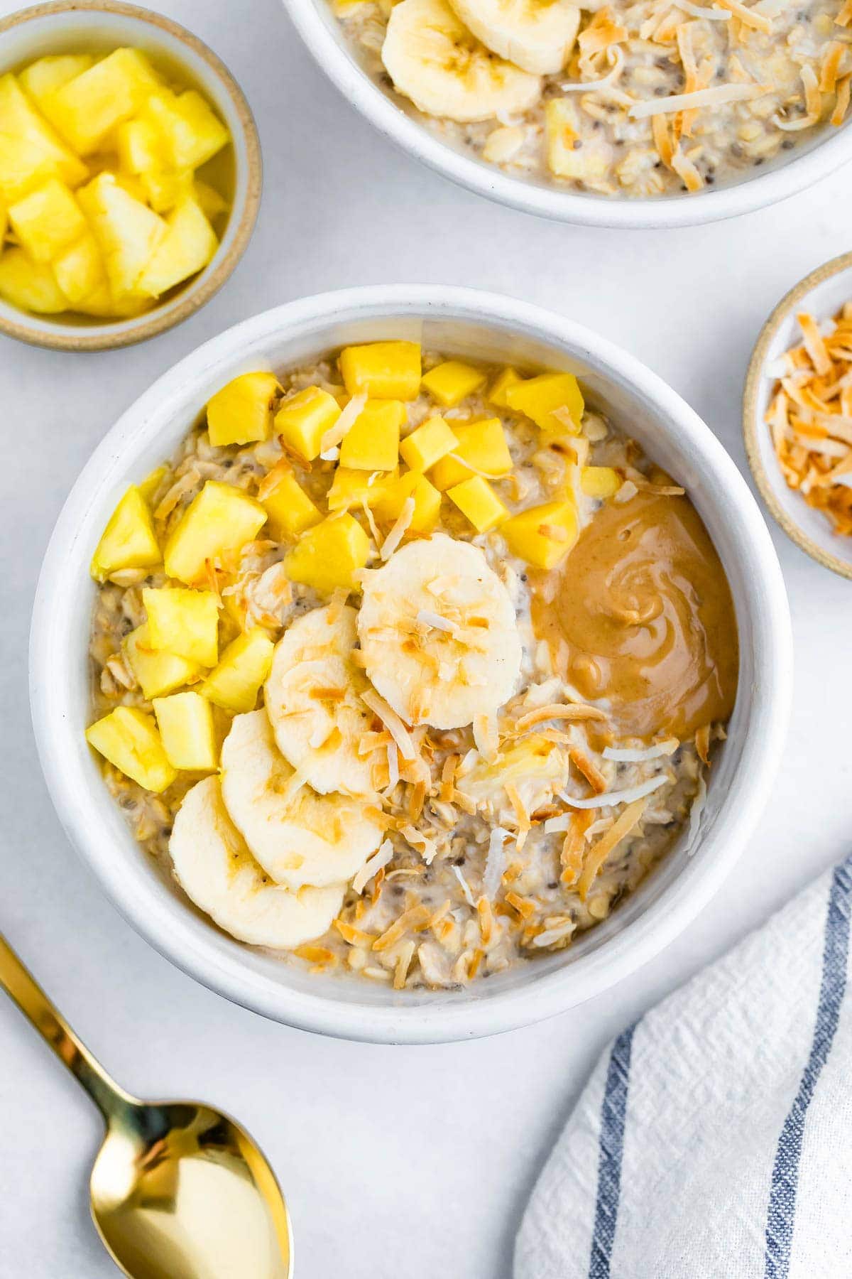 Here everything you’ll need for these “taste of the tropics” overnight oats: