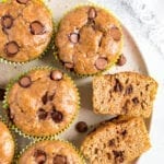 I wanted to keep the muffins as healthy as possible so I only added 1/4 cup of chocolate chips. You could use more if you want, but I think only having a minimal amount adds a little excitement with each bite because you never know when youโre going to get a chocolate chip. The bites with the chocolate chips are the best, obviously.