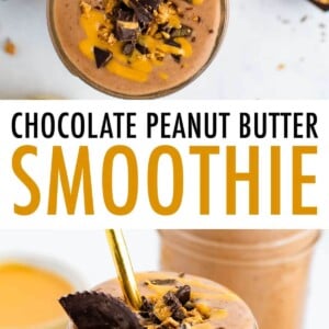 This chocolate peanut butter smoothie is rich, creamy and tastes like a peanut butter cup, but it’s made with healthy ingredients and packed with protein.