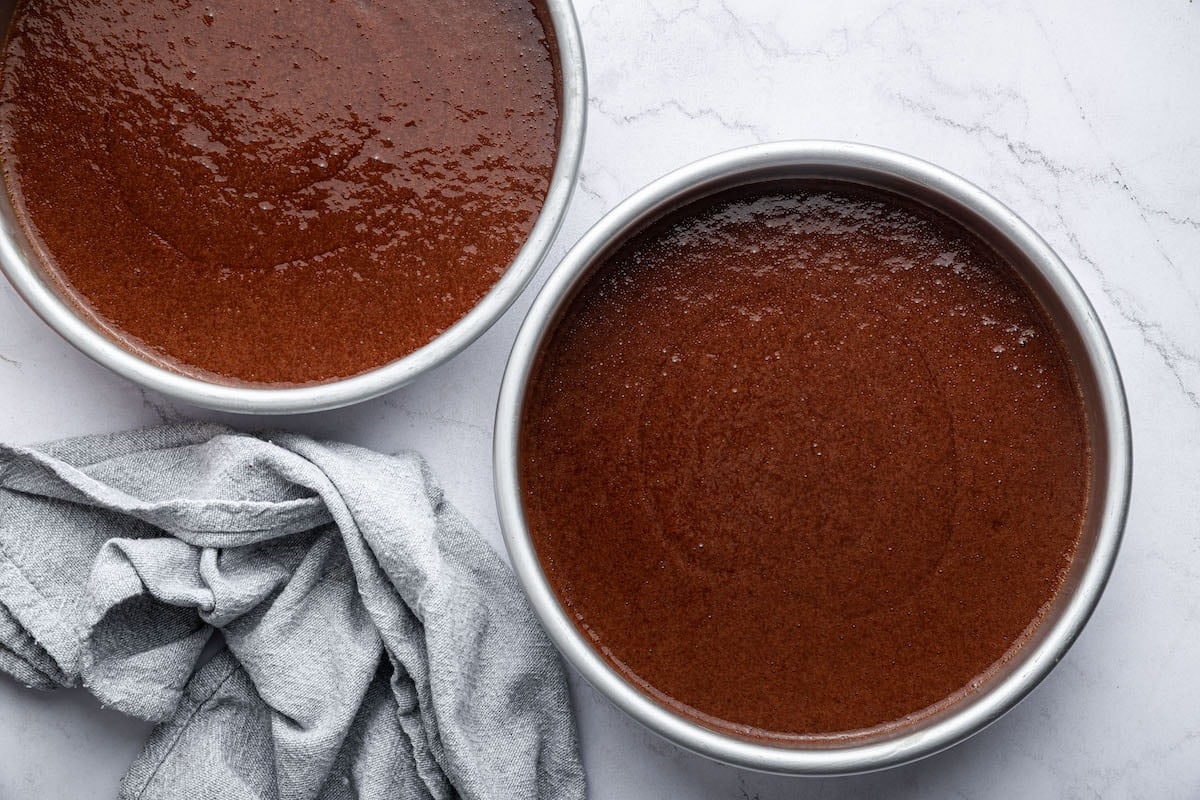 Step 5: Divide the batter evenly between the two prepared pans. Bake at 350°F for 30 minutes or until a toothpick inserted in the center comes out clean.