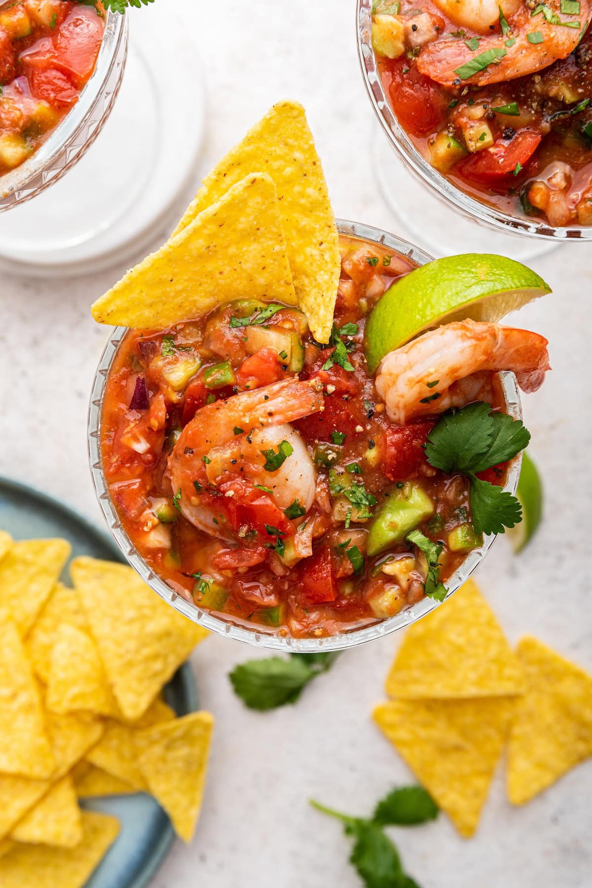- As an appetizer: Serve this Mexican shrimp cocktail in individual cocktail glasses for an elegant appetizer at parties or gatherings. You could also serve up this skinny margarita or paloma for an adult beverage.