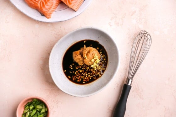 - Whisk together miso, mirin, tamari and ginger in a small bowl until smooth.