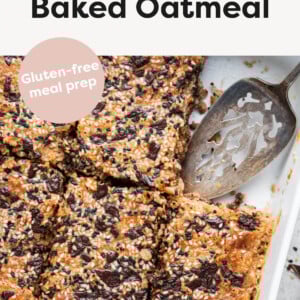 - Enjoy this baked oatmeal with a protein shake or protein smoothie (this tahini smoothie is delicious!) for a more filling breakfast.