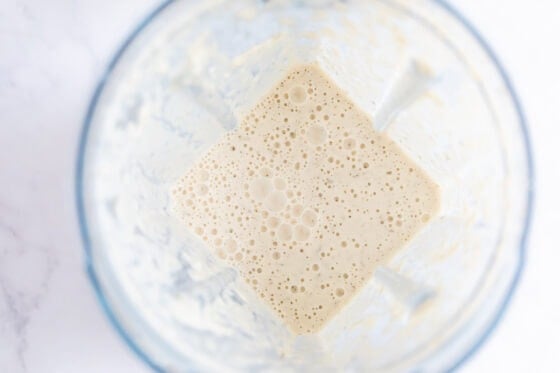 Just like my vegan sour cream, soaking the cashews is essential for this recipe! If they aren’t soft enough you’ll end up with a chunky dressing rather than a smooth and creamy one. That said, I get that soaking cashews for 3-4 hours (or overnight) can be a pain, especially if you want to make this recipe right away.